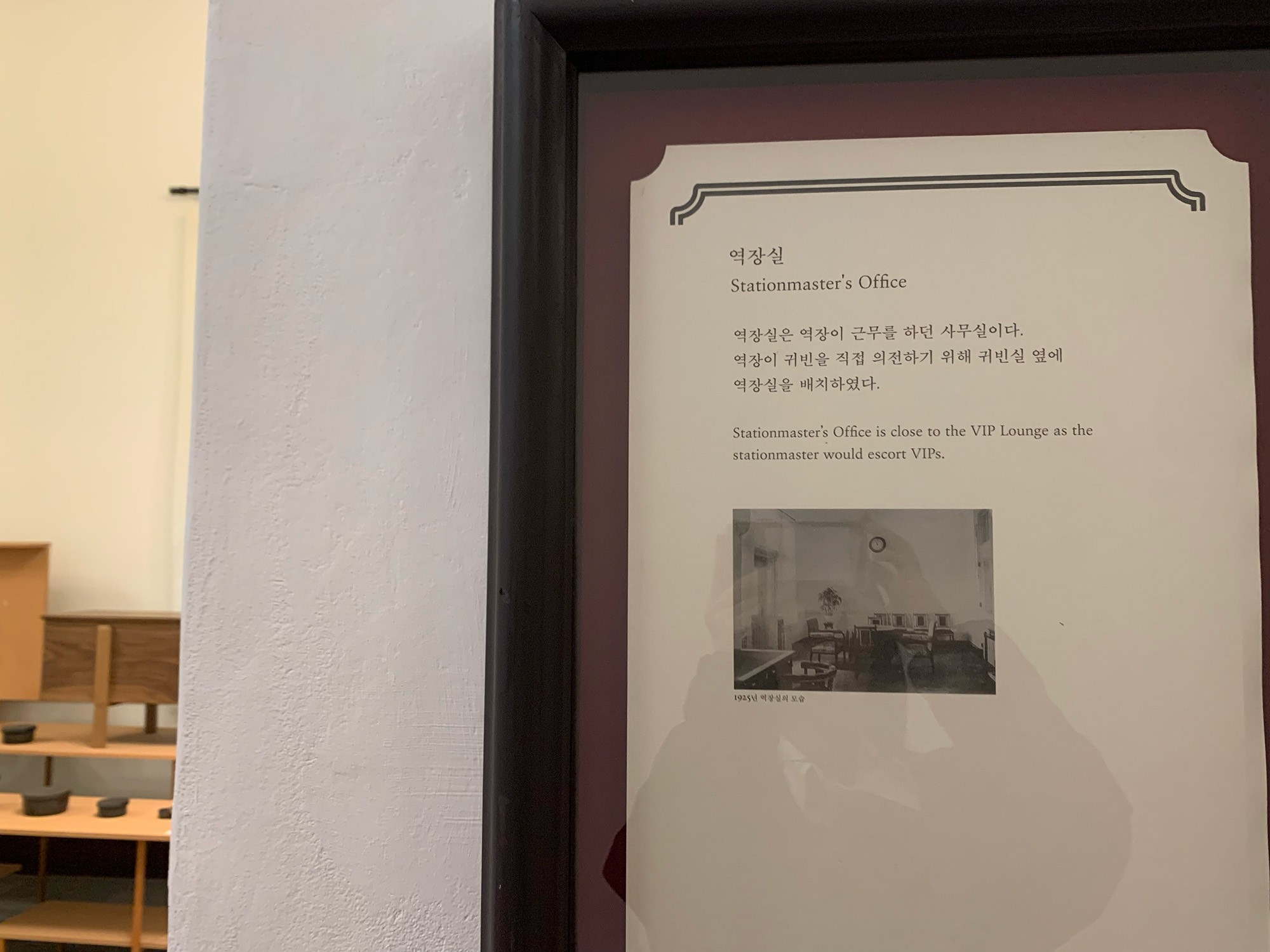 전시관마다 그 당시 어떤 공간으로 쓰였는지에 관한 설명문이 게재되어 있어요. 역장실, 귀빈실 등 공간을 칭하던 이름을 보는 것도 하나의 즐거움이 되더라고요. 곳곳이 근대양식의 흔적이 그대로 담겨져 있어, 특별한 전시가 진행되고 있지 않더라도 건물 하나만으로 한번 가보는 것도 충분한 가치가 있겠다 생각되었습니다.